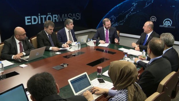 : - Editör Masası'ndan genel plan - Dışişleri Bakanı Mevlüt Çavuşoğlu'nun konuşmasıANKARA - Dışişleri Bakanı Mevlüt Çavuşoğlu, Anadolu Ajansı Editör Masası'na konuk oldu.(2)