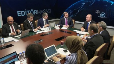 : - Editör masasından genel detay - Dışişleri Bakanı Mevlüt Çavuşoğlu'nun konuşmasıANKARA - Dışişleri Bakanı Mevlüt Çavuşoğlu, Anadolu Ajansı Editör Masası'na konuk oldu. (8)