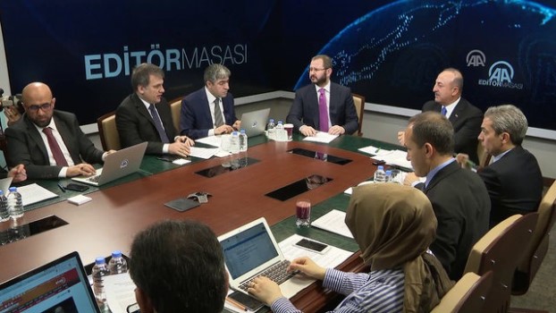 : - Editör masasından genel detay - Dışişleri Bakanı Mevlüt Çavuşoğlu'nun konuşmasıANKARA - Dışişleri Bakanı Mevlüt Çavuşoğlu, Anadolu Ajansı Editör Masası'na konuk oldu. (6)