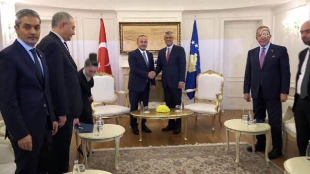 - İkili görüşmeden görüntüler - Thaçi, Çavuşoğlu'nu Cumhurbaşkanlığı ofisinde kabul ettiPRİŞTİNE (AA) - Dışişleri Bakanı Mevlüt Çavuşoğlu, Kosova Cumhurbaşkanı Haşim Thaçi ile görüştü.Thaçi, resmi temaslarda bulunmak üzere geldiği Kosova ’nın başkenti Priştine’de Çavuşoğlu'nu Cumhurbaşkanlığı ofisinde kabul etti.Basına kapalı gerçekleşen kabul yaklaşık yarım saat sürdü.Çavuşoğlu öncesinde Kosova Birinci Başbakan Yardımcısı ve Dışişleri Bakanı Behgjet Pacolli ile bir araya gelerek ortak basın toplantısı düzenlemişti.Dışişleri Bakanı Çavuşoğlu'nun yarın ülkenin güneybatısındaki Prizren şehrinde temaslarda bulunması bekleniyor. Basın ToplantısıToplantıBaşkent