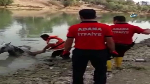 Ceyhan Nehri'ne düşen at, itfaiye ekipleri tarafından kurtarıldı
