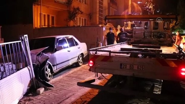 DENİZLİ - Çarptığı bahçe kapısına sıkışan otomobilin sürücüsü aracı terk edip kaçtı