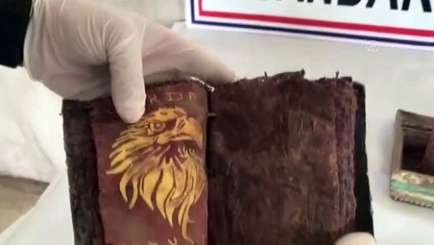 - Operasyon anı - Ele geçirilen tarihi eserlerin görüntüsü Diyarbakır 'da deri üzerine yazılı 3 kitap ve ferman ele geçirildi - İl Jandarma Komutanlığınca düzenlenen tarihi eser operasyonunda 6 şüpheli gözaltına alındıDİYARBAKIR (AA) - Diyarbakır 'da tarihi eser olduğu değerlendirilen deri üzerine yazılı 3 kitap ve ferman ile eski sandık ele geçirildi.Valiliğin açıklamasına göre, İl Jandarma Komutanlığınca yapılan çalışmada Bismil ilçe merkezinde ikamet eden 3 şüphelinin ellerinde bulundurdukları tarihi eserleri satmak için alıcı aradıkları bilgisine ulaşıldı.İlçedeki otobüs terminalinde 16 Mart'ta gerçekleştirilen operasyonda, şüpheliler tarihi eserleri satmaya çalıştıkları esnada suçüstü yakalandı.Şüphelilerin üzerlerinde yapılan aramada, tarihi eser olduğu değerlendirilen deri üzerine yazılı 3 kitap, deri ferman, 15x20 santimetre ebatlarında eski sandık obje ele geçirildi.Ele geçirilen tarihi eserler, muhafaza altına alınarak Müze Müdürlüğüne teslim edildi.Olayla ilgili 6 şüpheli gözaltına alındı. Otobüs TerminaliAkalan