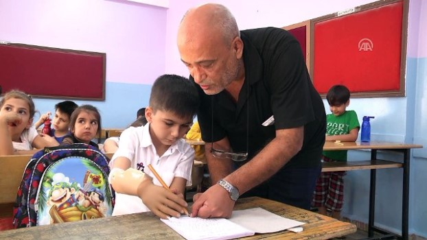 - "Allah devletten razı olsun"Baba Vedat Metin de oğlunun doğuştan sol eli ve sağ kolunun olmadığını, devletin sağladığı destekle oğluna biyonik kol takıldığını ifade ederek, evladının okula başlamasının mutluluğunu yaşadığını dile getirdi.Metin, "Allah razı olsun devletten, bize yardımcı oldu. Şimdi çocuğum rahatlıkla okula gidiyor. 8 yaşına kadar Süleyman'ı okutamadık. Biyonik kol yapıldı. İnşallah bundan sonra onu daha iyi okutacağız. Oğlum da çok mutlu." diye konuştu.