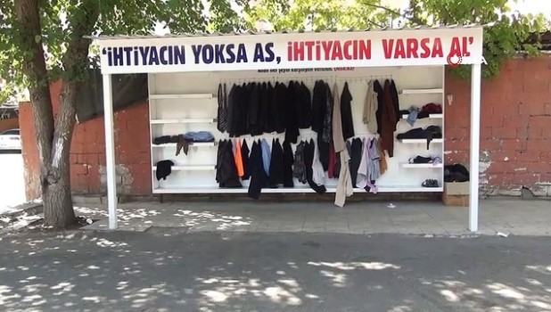 - Diyarbakır’da başlatılan askıda kıyafet uygulamasıyla ihtiyaç sahibi vatandaşlara kıyafet yardımı yapılıyor.Kıyafetin asıldığı alana gelenler kendini bir mağazada gibi his ederek ihtiyaçlaarını karşılıyorlar. Diyarbakır’ın Yenişehir ilçesinde yardımseverler tarafından oluşturulan ‘İhtiyacın yoksa as varsa al’ standı kuruldu. Vatandaşlar tarafından el birliğiyle kurulan stant sayesinde ihtiyaç sahibi olan vatandaşlar ücretsiz kıyafet sahibi oluyor. Askıda kıyafet uygulamasıyla ihtiyaç sahiplerinin çekinmeden kıyafet alabileceklerini söyleyen proje sorumlularından Abdullah Bahattin Erbek, ’İhtiyacın yoksa as varsa al standını Serbest Muhasebeci ve Mali Müşavirler Odalar Birliği Başkanı Mustafa Vural ve Kadri Yaman ile beraber kurduk. Bu standı kurmamızın amacı evde ihtiyaç fazlası elbisesi olup da giyilebilecek tarzında fazlalığı olanlar gelip bu standa asar ihtiyaç sahipleri gelip bu standa herkesin gönlüne göre elbiseleri alır. Her semtte böyle elbise stantları açılırsa bizim içinde vatandaş içinde çok makbul olur. Herkes kendine göre ne kadar yardımı dokunabiliyorsak ve kendi halkımıza vatandaşımıza yardımcı olabilirsek çok iyi olur. İhtiyacı olanda mesela kendini burada bir mağazada gibi görüyor. Gönül rahatlığıyla ihtiyacını alıp giyip götürüyor" diye konuştu.