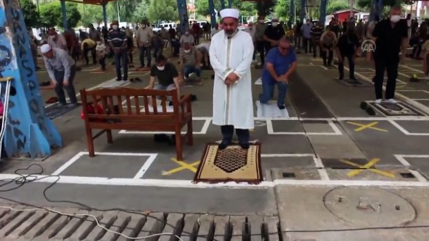 - İl Emniyet Müdürü Aktaş, Çukurova Kaymakamı Sarı ve Çukurova İlçe Emniyet Müdürü Orakoğlu'nun cuma namazı için gelmesi - Pazar yerinde cuma namazının kılınmasıDoğu Akdeniz'de cuma namazı, Kovid - 19 salgını sonrasında üçüncü kez kılındıADANA (AA) - Adana , Mersin, Hatay ve Osmaniye'deki camilerde, yeni tip koronavirüs (Kovid - 19) tedbirleri kapsamında verilen aradan sonra üçüncü kez cuma namazı kılındı. Adana 'nın merkez Çukurova ilçesinde cuma namazı için vatandaşlar semt pazarında oluşturulan alana geldi.Namazda, maske takarak önlem alan vatandaşlar, sosyal mesafe kuralına uygun saf tuttu.Cuma namazını İl Emniyet Müdürü Zafer Aktaş, Çukurova Kaymakamı Osman Sarı ve Çukurova İlçe Emniyet Müdürü Tansel Orakoğlu da kıldı. KoronavirüsMazdaCuma NamazıUttuSemt Pazarı