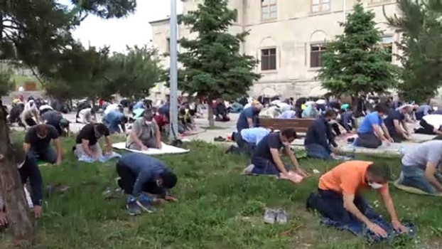 - Vatandaşların açık alanlarda namaz kılması - Vatandaşların sosyal mesafe ve maske kuralına uymasıKARS - Vatandaşlar, yeni tip koronavirüsle mücadele kapsamında üçüncü kez belirlenen alanlarda cuma namazı kıldı. Kars 'ta Evliya Camisi bahçesinde vatandaşlar cuma namazı kıldı. KoronavirüsCuma Namazı