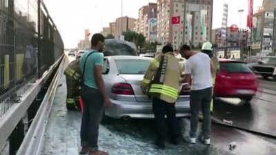 E-5’te aküsünden yangın çıkan araç trafiği durma noktasına getirdi