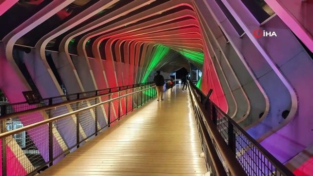 - Endonezya’nın başkenti Jakarta’da bulunan 10 yaya köprüsü her gün Filistin’e destek amacı ile Filistin bayrağının renkleri ile aydınlatılıyor. İsrail’in Gazze Şeridi’ne yönelik saldırıları devam ederken, dünyanın birçok ülkesi Filistin’e desteğini göstermek amacı ile tarihi ve kültürel mekanlarını Filistin bayrağının renkleri ile aydınlatıyor. Endonezya’nın başkenti Jakarta’da bulunan 10 yaya köprüsü her gün yerel saatle 17.00’dan itibaren Filistin’e destek amacı ile Filistin bayrağının renkleri ile aydınlatılıyor. Jakarta Otoyol Servisi Başkanı Hari Nugroho, Filistin halkıyla dayanışma mesajı olarak Filistin bayrağının renklerinin köprülere yansıtıldığını ifade ederek, yapılan aydınlatma ile Filistin halkının şu anda çektiği sıkıntılara dikkat çekilmesinin amaçlandığını aktardı.