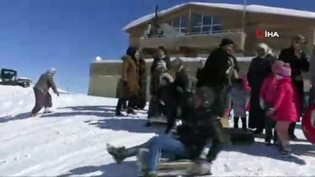 - Hakkari’deki ev kadınları, işlerini bırakıp şalvarla kayağa koştular. Kent merkezinde 12 kilometre mesafede ve 2012 yılında faaliyete giren Gençlik ve Spor İl Müdürlüğü Kayak Merkezi, vatandaşların akınına uğradı. Hafta sonu tatili olması nedeniyle aileler çocuklarıyla birlikte 2 bin 800 rakımdaki kayak merkezinde eğlenmenin tadını çıkardılar. Kiralık kızakların yetersiz kalması sonucu bazı aileler tahta parçaları ve naylon üzerinde kaydılar. Evdeki işlerini bırakıp çocuklarıyla birlikte kayak merkezine gelen kadınlar; bazen tek, bazen de çocuklarını kucaklarına alarak düşe kalka kaydılar. Çevre illerden bile ailelerin akın ettiği kayak merkezi, vatandaşlarla dolup taştı. İlginç görüntülerin yaşandığı kayak merkezinde kaymanın heyecanını yaşadığını belirten çocuklar, sömestri tatilin son gününü kayarak geçirmenin mutluluğunu yaşadıklarını söylediler. Okulların yarın başlayacağını ifade eden çocuklar, aileleri ile birlikte kayak merkezinde stres attıklarını ve çok iyi bir tatil geçirdiklerini belirttiler. Hakkari’de uzun süredir görev yapan bir memur ise, “Uzun bir zamandır Hakkari’de görev yapıyorum. Hakkari batıda tanıtıldığı gibi bir yer değil. Aile ve çocuklar için burası çok iyi bir yer ve herkesi buraya bekleriz. Burası kışın başladığı yer. Herkesin kaymak istediği yer burası. Uludağ hikaye, herkesin gelip Hakkari’yi görmesini isterim” dedi.