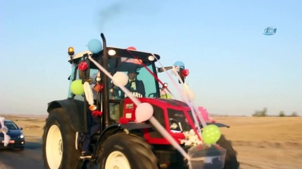 Hafta sonu dünya evine giren çiftin gelin arabası da, evlilik teklifinde kullanılan traktör oldu. Damat Yasin Irmak, gelin almaya traktörle giderken, gelin Ebru Kara ise geri dönüşte traktörü kullandı. Çiftin en mutlu gününde yakınları da yanlarında bulundu.