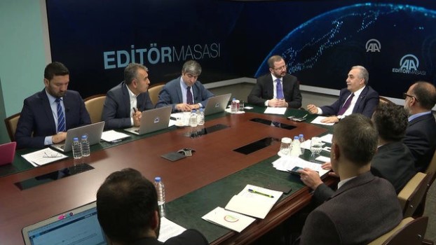 : - Editör masasından genel detay - Gıda, Tarım ve Hayvancılık Bakanı Ahmet Eşref Fakıbaba’nın konuşmasıANKARA - Gıda, Tarım ve Hayvancılık Bakanı Ahmet Eşref Fakıbaba, Anadolu Ajansı Editör Masası'na konuk oldu. (6)