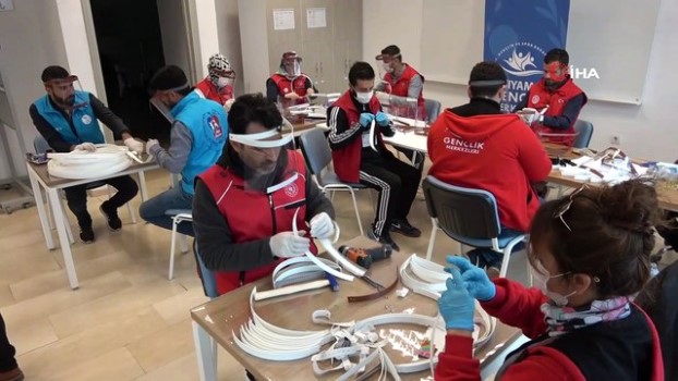 Kalkan yapımında silikon sürme görevini üstlenen gençlik liderlerinden Mehmet Tepe ise, “Sağlık çalışanlarımıza bir nebzede olsa katkı sunmak amacıyla maske yapıyoruz. Gündü 350 tane yapıyoruz. İnşallah bu sayıyı artıracağız. Bu şekilde gençlik lideri ve gönüllü genç arkadaşlarımızla beraber kalkan üretiyoruz” diye konuştu.