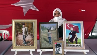 "Çocuklarımızı ve Diyarbakır gençlerini kandırıyorlar" 2017 yılının mayıs ayında çocuğunu işe gönderdiğini ve o günden beri kendisini aradığını kaydeden Elhaman, "Hiçbir ses seda yok, bir telefon bile telefon açmadılar. 301 gündür biz buradayız ve bin yıl da geçse evladımızı HDP’den almayana kadar buradan gitmeyeceğiz. HDP ve PKK bizim için birdir, HDP gençlerimizi kaçırıyor, gençler HDP’ye inanmasınlar. Çocuklarımızı ve Diyarbakır gençlerini kandırıyorlar gitmesinler. Ben oğlumu ne olursa olsun bekleyeceğim. Oğlum beni izliyor ve dinliyorsan gel devletimizin ellerine teslim ol. Cumhurbaşkanımız ve İçişleri Bakanımız arkamızda hiç korkmadan gelebilirsin oğlum. Nereden olursan ol gel bekliyorum" dedi.