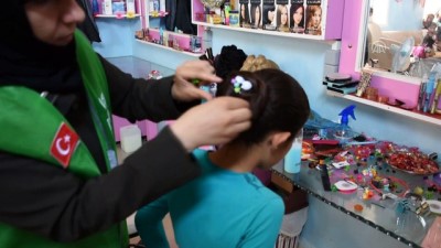 "Hem Saçlara Hem Kalplere Örgü" projesi - AZEZ - Gönüllü kuaförlerin kız çocukların saçlarını rengarenk tokalarla süslemesi - Proje yetkilisi Tülay Gökçimen ile röportajAZEZ (AA) - İnsan Hak ve Hürriyetleri (İHH) İnsani Yardım Vakfı, "Human Movie Team" ve "For Children" yardım kuruluşları, Suriye'nin kuzeyindeki Azez 'de bulunan kamplarda kız çocuklarının saçlarını süslüyor, kuaförlük hizmeti sunuyor.İHH, "Human Movie Team" ve "For Children" yardım kuruluşları, Kilis'in karşısındaki Suriye topraklarında yer alan Siccu, Reyyan ve Şemmarin kamplarında "Hem Saçlara Hem Kalplere Örgü" projesini yürütüyor.Bölgedeki mevcut ve Türkiye'den gelen gönüllü kuaförler, kamplarda bulunan 6 - 12 yaş arası kız çocuklarının saçlarını rengarenk tokalarla süslüyor.Üç gün sürecek olan etkinlikte şimdiye kadar yaklaşık bin 500 kız çocuğuna kuaförlük hizmeti verildi. Proje yetkilisi Tülay Gökçimen, AA muhabirine yaptığı açıklamada, 3 günde 2 binin üzerinde çocuğun saçlarını süslemeyi hedeflediklerini belirterek, "Çocuklar çok mutlu oluyor. Kız çocukları saçlarını yaptırmak için yanımıza koşuyor. Bu projeyi geleneksel hale getirip önümüzdeki yıllarda da sürdürmeyi planlıyoruz." dedi.