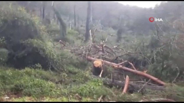( MUĞLA )- Fethiye’de hortum yüzlerce ağacı koparıp etrafa fırlattı MUĞLA