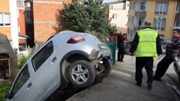 - Ordu’nun Altınordu ilçesinde 2 otomobilin beton duvardan bahçeye uçtuğu kazada 2 kişi yaralandı. Kaza, Bucak Mahallesi 392. Sokak’ta meydana geldi. Edinilen bilgilere göre, Ahmet Tekin S. (75) idaresindeki 06 DE 1094 plakalı otomobil, iddiaya göre park halinde bulunan 52 AJ 046 plakalı Kenan A.’ya ait otomobiline çarptı. Çarpmanın etkisiyle her 2 otomobil, beton duvarı aşarak bahçeye uçmadan asılı kaldı. Kazayı görenler hayrete düştü Çevrede bulunanların da hayret ettiği kazada, otomobiller şans eseri devrilmeden durabilirken, kazada sürücü Ahmet Tekin S. ve araçta bulunan eşi Nazmiye S. (66) yaralandı. Yaralılar, olay yerine gelen 112 Acil Servis ekipleri tarafından yakında bulunan Sağlık Bakanlığı Ordu Üniversitesi Eğitim ve Araştırma Hastanesine götürülerek tedavi altına alındı. Araçlar ise olay yerine gelen vinç vasıtasıyla kurtarılarak çekiciye yüklendi. Yaralıların hayati tehlikeleri bulunmazken, polis ekipleri kazayla alakalı çalışmalarını sürdürüyor. Öte yandan, park halindeki aracın sürücü Kenan A., aracında masraf olduğunu ve kazanın nasıl gerçekleştiğini anlayamadığını söyledi.