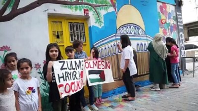 İsrail'in Filistin'e zulmünü çizdikleri resimle protesto ettiler