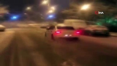 ( İSTANBUL - ÖZEL)- Ataşehir ve Ümraniye’de magandalar kar yağışı altında otomobil ile “drift” yaptı- Karda magandaları durdurmadı İSTANBUL