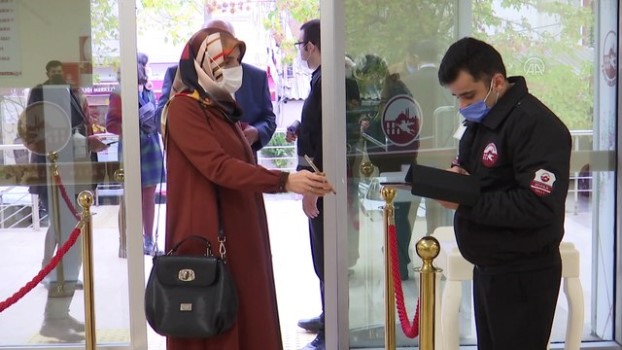- Nikah salonlarından görüntüler - Girişte HES kodu denetimi yapılması - Nikah törenlerinden görüntüler İstanbul 'daki nikah salonlarında yoğunluk yaşanıyor - Hafta sonunda Kovid - 19 tedbirleri kapsamında uygulanacak sokağa çıkma kısıtlaması nedeniyle çiftlerin nikahı hafta içinde kıyılıyorİSTANBUL (AA) - Yeni tip koronavirüs (Kovid - 19) salgını dolayısıyla hafta sonu uygulanacak sokağa çıkma kısıtlaması, nikah salonlarında yoğunluğa neden oldu.Belediyeler, hafta sonu için nikah tarihi alan çiftleri arayarak, hafta içine gün veriyor.Fatih Belediyesi Evlendirme Dairesi görevlileri de aradıkları çiftlerden tarih değişikliğini kabul eden 50'sinin nikahı için hafta içine gün verdi.Talebi kabul eden çiftlerin nikahları bugünden itibaren kıyılmaya başlandı.Nikah için salona gelen, gelin ve damat dahil herkesin ateşi ölçülüyor ve bu kişiler HES koduna bakıldıktan sonra salona alınıyor.HES kodu olmayan ve koda göre riskli bulananların salona girişine izin verilmiyor.Belediye ekipleri, normal zamanlarda 270 kişinin kabul edildiği salona, gelin damat dahil en fazla 30 kişinin girişine izin veriyor.Davetliler, koltuklar arasında boşluk bırakılarak oturtuluyor. Ayrıca eksiden izin verilen 4 şahit uygulaması da 2 kişiye indirildi.Kalabalığın önlenmesi için nikah töreni bitirildikten sonra gelin, damat ve davetliler başka bir kapıdan çıkartılarak takı salonuna alınıyor.Daha sonra diğer nikahı kıyılacak diğer çift ve davetliler salona giriyor. Salonda takı töreni yapılmasına izin verilmiyor. Hediyeler ise sandığa bırakılıyor. Hafta SonuKoronavirüsTakı TöreniNikah TarihiNikah Töreni