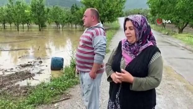 - Bursa'nın İznik ilçesinde dün geceden bu yana şiddetli yağan yağmur sebebiyle binlerce dönüm ekili alan sular altında kaldı. Haziran ayı olmasına rağmen Bursa'da son bir haftadır devam eden sağanak yağmurlar İznik ilçesini vurdu. İlçede dün geceden bu yana devam eden şiddetli yağmur sebebiyle ekili alanlar sular altında kaldı. Yağış sonrası tarlalarına giden çiftçiler gördükleri manzara karşısında hayatlarının şokunu yaşadı. Tarlaların büyük bir kısmını sel basarken ekili ürünlerin tamamına yakını da zarar gördü. Büyük bir çoğunluğu tarlalarında kabak, domates, şeftali ve zeytin yetiştiren çiftçiler mağdur olduklarını dile getirdi. Mustafa Derebaş isimli çiftçi, "Tam bir haftamız vardı. Kabakları toplayacaktık. Sabah tarlaya gittim. Her yeri su basmış. Zararımız çok büyük ama yapacak bir şey yok. Her şey Allah'tan. Biz elimizden geleni yapıp tüm uğraşı vereceğiz. Ama çok ta umutlu değilim açıkçası. Çünkü geride kalan tüm köklerde çürüyecek" diye konuştu.
