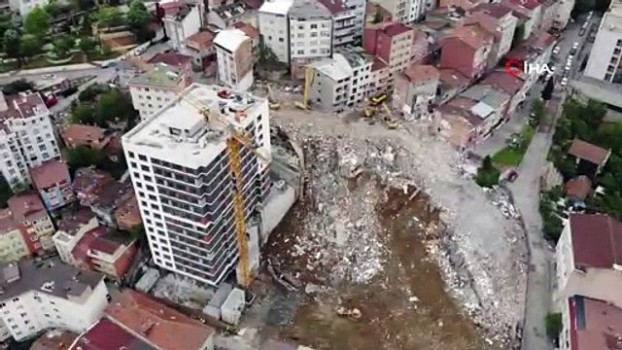 - Kağıthane’de yıkım kararı verilen 24 binadan geriye kalan 10 binanın iş makineleriyle yıkım çalışmaları devam ediyor. Çalışmalar havadan görüntülenirken, binalarda yaşayan vatandaşlar ise eşyalarını taşımaya devam etti. Yetkililer ise çevredeki binalardan numune alarak kontrollerini sürdürüyor. Kağıthane Yahya Kemal Mahallesi Akıncı Sokak üzerinde inşaat alanındaki kazı çalışmaları sonucunda önce istinat duvarı ardından da bir bina çökmüştü. Ölen ya da yaralananın olmadığı olayda büyük panik yaşanmıştı. Olayın ardından yetkililerin incelemesi sonucunda çökmek üzere olan bir bina da iş makineleriyle kontrollü bir şekilde yıkılmıştı. Olay nedeniyle semtteki 24 bina boşaltılmış, bir süre sonra vatandaşların kısa bir süreliğine eşyalarını almasına izin verilmişti. Geriye kalan 10 binanın yıkım çalışmaları devam ediyor Geçtiğimiz hafta yıkım kararı verilen 24 binanın yıkımına başlanmıştı. İş makineleriyle yapılan yıkım çalışmaları sonucunda kalan 10 binanın da yıkım çalışmalarının devam ettiği öğrenildi. Çalışmalar düzenli aralıklarla devam ederken, oluşan enkaz ise hafriyat kamyonlarıyla kaldırıldı. Yıkılan binaların enkazı ve oluşan alan ile yıkılmaya başlanan binalar havadan görüntülendi. Öte yandan yıkım kararı verilen evlerin bitişiğindeki binalar ise yetkililer tarafından numune alınarak kontrol ediliyor. “Ramazan sebebiyle kimse mağdur edilmedi” Numune alınan binaların ise yapılan kontroller sonrasında yıkılıp yıkılmayacağına karar verilecek. Semtte yaşayan bir vatandaş, “Vatandaşlar mağdur olmadı, otellere yerleştirildiler. Akrabası olan akrabasına gitti. Herkese ev kirası verildi, perişan olmadılar. Devlet gelip yardımcı oldu. Ramazan sebebiyle kimse mağdur bırakılmadı. Eşya taşımak için araç ve taşıma parası da verdiler. Bir miktar eşya parası da verilerek, kimseyi mağdur etmediler” dedi.