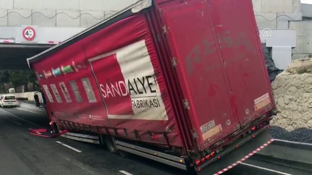 - Kamyondan detaylarİSTANBUL - Bakırköy Sahil yolunda köprü altına sıkışan kamyon asılı kaldı.
