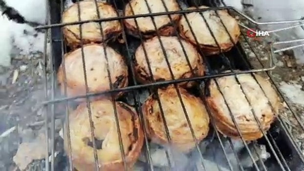 -Vatandaşların karda kokoreç hazırlaması ve pişirmesi