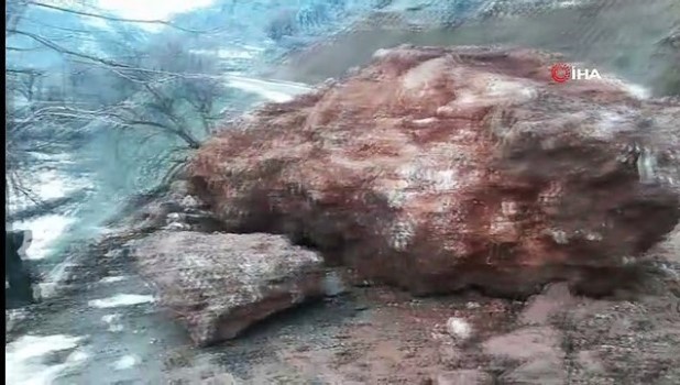 ( ADIYAMAN )- Dev kaya parçaları yolu trafiğe kapattı ADIYAMAN