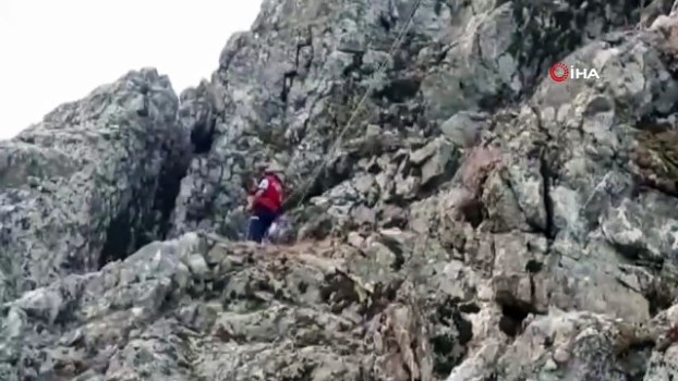 Kayalıklara kaçan keçiyi itfaiye ekipleri indirdi