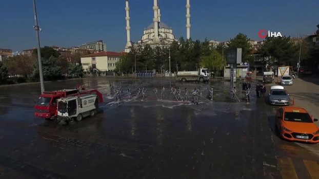( KIRIKKALE )- Her gün yüzlerce kişinin kullandığı meydan ve caddeler dezenfekte ediliyor KIRIKKALE