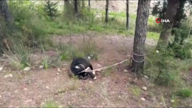 Köpeği ormanda ağaca bağlayıp ölüme terk ettiler