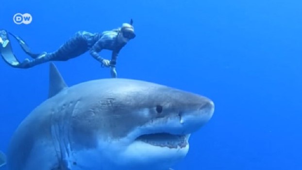 Hawaii'nin Oahu açıklarında iki köpek balığı araştırmacısı Ocean Ramsey ve Juan Oliphant'ın bir dev köpek balığıyla karşılaştıkları anlar inanılmaz görüntülere sahne oldu.