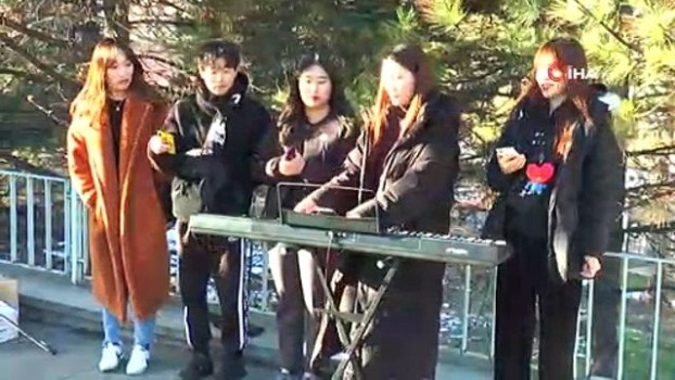 Güney Kore’den gelen üniversite öğrencilerinin sokakta söylemiş oldukları şarkıları vatandaşlar da cep telefonu kameralarıyla kaydetmeleri dikkatlerden kaçmadı.