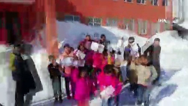 - Bingöl'de karla kaplı yolu açılan köyde öğrenciler karne sevincini bugün yaşadı. Türkiye genelinde hemen hemen tüm illerde öğrenciler dün karnelerini aldı. Kar yağışının son 2 haftadır yoğun olduğu Bingöl'ün Karlıova ilçesine bağlı bazı köylerde ise yolların kapalı olması nedeniyle öğrenciler karne sevincini yaşayamadı. O köylerden biri olan ilçeye bağlı Taşlıçay köyü yolu ise İl Özel İdare ekiplerinin çalışmasıyla açıldı. Yolun açılmasıyla birlikte köydeki Şehit İdris Demir İlk ve Ortaokuluna öğretmenler cumartesi günü demeyip okula giderek öğrencilere karnesini verdi. Karne alan bazı öğrenciler, daha sonra yoldaki karı fırsat bilerek kayak takımları ile kayarak eğlendi.