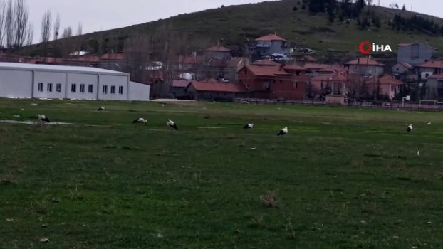 Leylekler göç yolunda Mahmut köyünde konakladı