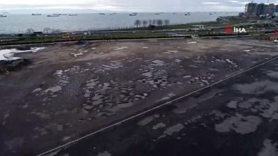 ( İSTANBUL -ÖZEL)- Görüntüler hayran bıraktı- Lodos nedeniyle uçamayan martılar havadan görüntülendi İSTANBUL
