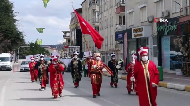 Maskeli eldivenli Mehter Takımından evde kalan vatandaşa destek