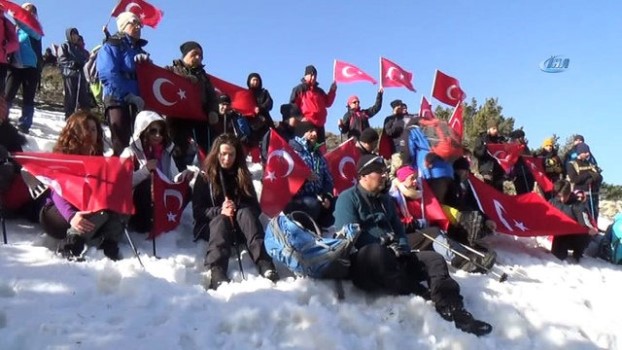 ( SİVAS )- Türkiye Dağcılık Federasyonu Sivas İl Temsilciliği Afrin'de devam eden Zeytin Dalı Harekatı'na destek vermek amacıyla 75 dağcı ile birlikte bin 500 rakım yüksekliğindeki Çamlıbel'de bulunan ormanda yaklaşık 10 kilometre dağ yürüyüşü yaptılar SİVAS