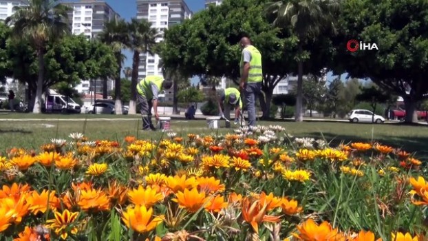 Mersin'de sahil bandına sosyal mesafe çemberi
