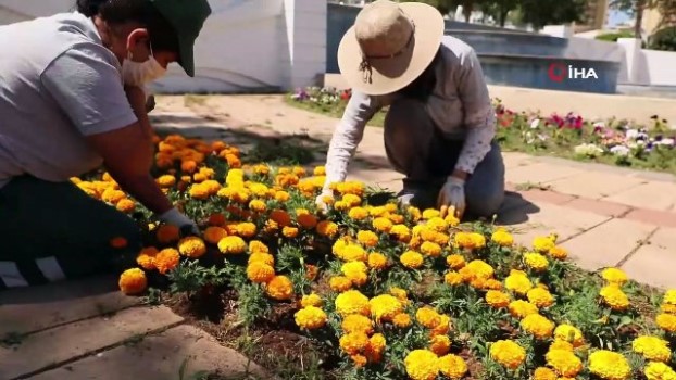 -Parkların çiçeklendirilmesi çalışmalarından görüntü