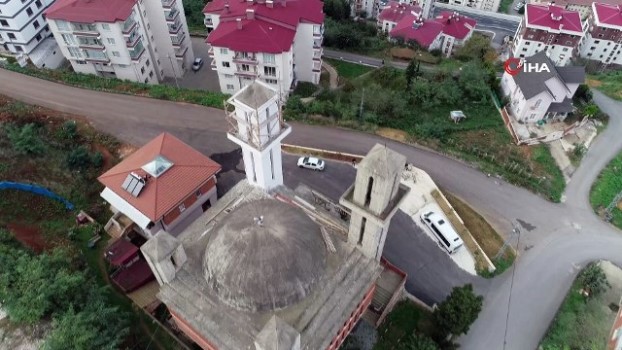 Mimarisi nedeniyle kiliseye benzetilen ve 2 yıl önce inşaatı duran caminin yapımına tekrar başlanıldı...Cami havadan böyle görüntülendi