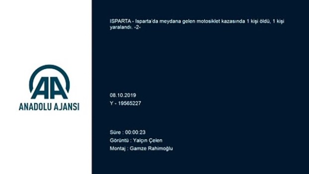 - Olay anı güvenlik kamerası görüntüleri Isparta ’da motosiklet kazası: 1 ölü, 1 yaralıISPARTA (AA) - Isparta ’da meydana gelen motosiklet kazasında1 kişi öldü, 1 kişi yaralandı.Alınan bilgilere göre, İsmail Hakkı İnliceliler yönetimindeki 07 FZT 37 plakalı motosiklet, Yayla Mahallesi İsmet Paşa Caddesi'nde aydınlatma direğine çarparak devrildi.İhbar üzerine olay yerine gelen 112 Acil Servis ekipleri ve itfaiye ekipleri sevk edildi.Kazada, sürücü olay yerinde hayatını kaybetti, motosikletteki Gülsüm Öcal ise yaralandı.Sağlık ekiplerince Isparta Şehir Hastanesi’ne kaldırılan Öcal'ın durumunun ciddiyetini koruduğu öğrenildi.İnliceliler'in cenazesi, otopsi yapılmak üzere Süleyman Demirel Araştırma ve Uygulama Hastanesi morguna kaldırıldı. SpartaGüvenlik KamerasıMotosiklet KazasıİnliceAydınlatma Direği