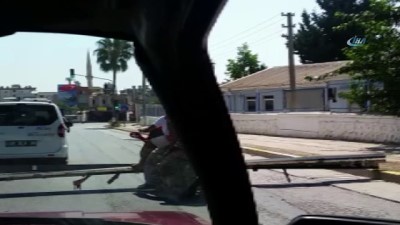 ( MERSİN )- Motosiklet ile demir taşıyan 2 kişi trafiği tehlikeye düşürdü MERSİN