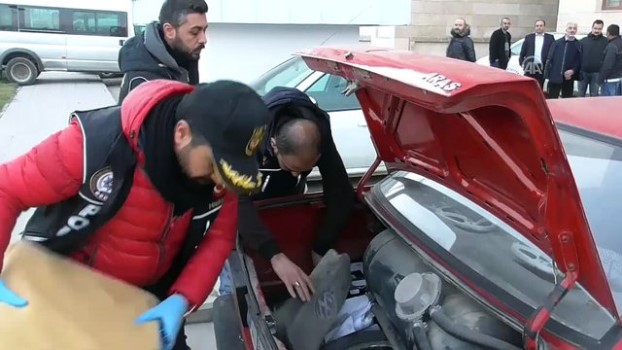 - - Narkotik kopeğinin araçı araması - Gizli bölmeye zulalanmış esrarı çıkarılması - Esrar Maddesinden görüntü - İki araçta yapılan aramada 31 kilo 600 gram esrar bulundu, 3 zanlı gözaltına alındıMUŞ (AA) - Muş 'ta düzenlenen uyuşturucu operasyonunda 31 kilo 600 gram esrar ele geçirildi.Valilikten yapılan açıklamaya göre, Emniyet Müdürlüğü Narkotik Suçlarla Mücadele Şubesi ve İstihbarat Şubesi ekipleri, uyuşturucuyla mücadele kapsamında çalışmalarına devam ediyor.Bu kapsamda kente uyuşturucu madde getirdiği tespit edilen araç ile öncülük yaptığı belirlenen başka bir araç uygulama noktasında durduruldu.Narkotik köpeğinin de kullanıldığı aramada 31 kilo 600 gram esrar ele geçirildi.Araçlarda bulunan ve "uyuşturucu madde ticareti yapmak" suçundan gözaltına alınan 3 zanlının emniyetteki işlemleri sürüyor. Uyuşturucuyla MücadeleUyuşturucuUyuşturucu OperasyonuUyuşturucu Maddeİstihbarat