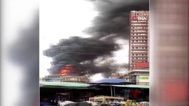 - Nijerya'nın Lagos bölgesinde bir pazar yerinde bulunan 5 katlı binada yangın çıktı. Nijerya’nın Lagos bölgesinde kentin en büyük pazarı olarak bilinen Balogun Pazarı’nda bulunan 5 katlı binada yangın çıktı. Alevler kısa sürede binayı kaplarken bölgeye çok sayıda polis ve itfaiye ekibi sevk edildi. Binada bulunanlar yangından kurtarabildikleri eşyaları camlardan fırlattı. Bazıları ise su dolu küçük kovalarla yangını söndürmeye çalıştı.