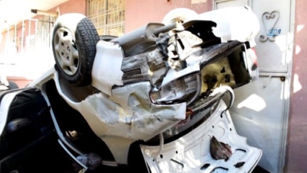 Otomobil apartman boşluğuna uçtu: 3 yaralı
