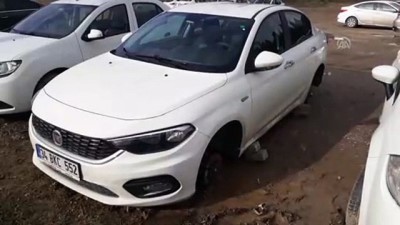 - Lastikleri çalınan otomobillerden görüntüler - Zanlıların adliyeye sevk edilişiKOCAELİ (AA) - Kocaeli 'nin Gebze ilçesinde bir otomobilin 2 lastiğini çaldıkları ileri sürülen 2 şüpheli, ertesi gün diğer lastiklerini sökerken suçüstü yakalandı. Adliyeye sevk edilen şüpheliler tutuklandı. Akalan