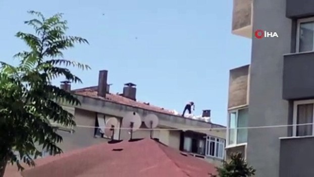 Pendik’te 5 katlı binanın çatısında tehlikeli çalışma kamerada