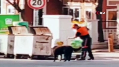 ( İSTANBUL -ÖZEL)-Pendik’te temizlik görevlisi ile sokak köpeğinin dostluğu gülümsetti İSTANBUL